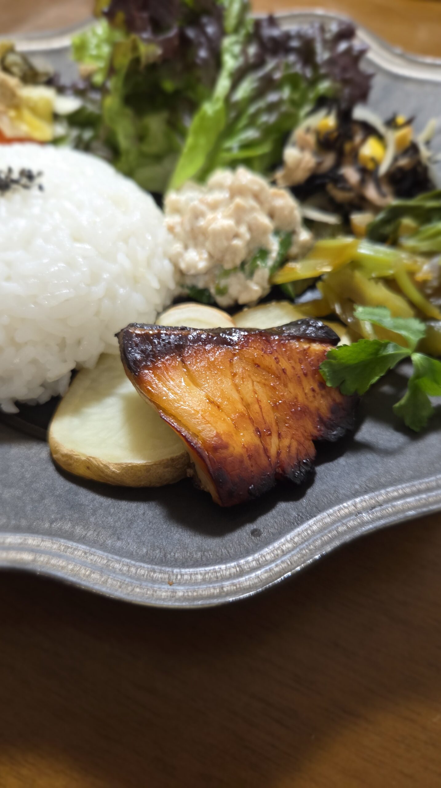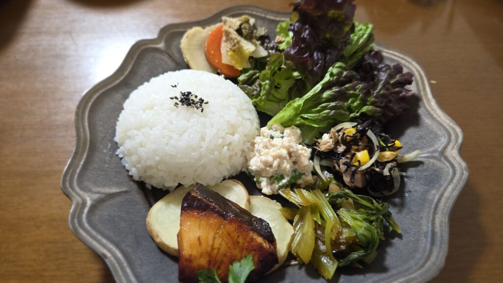 お魚は白身魚の縄文糠漬け焼き