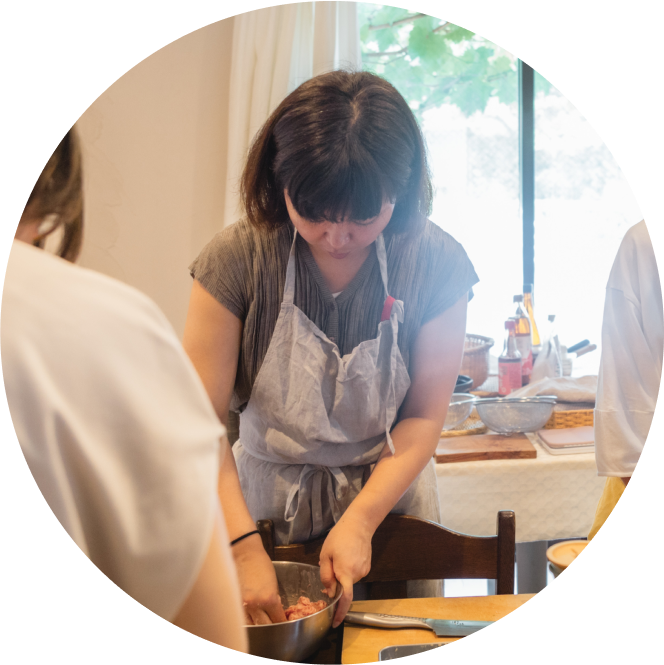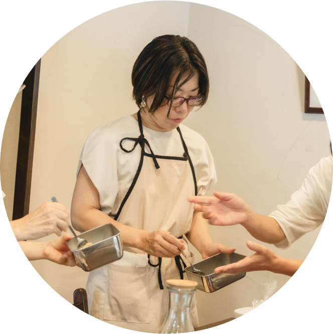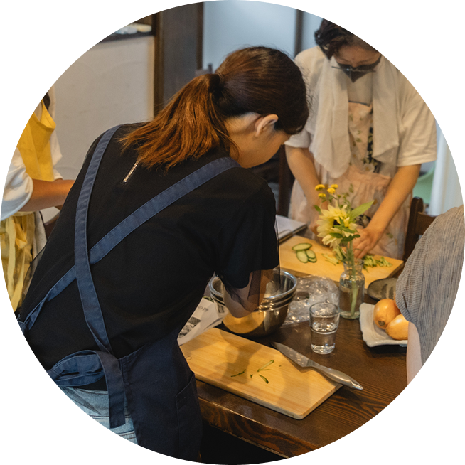 4名ほどのグループで楽しく学びながら実践。 工程は全て最初から最後までお一人で調理します。 周りに合わせることなく、ご自身のお好みの味で仕上げ、 自分にとっての美味しいを見つけていきます。 必要な持ち物等の詳細は事前にLINEにてご案内します。