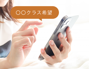 継続クラス・単発クラスのご希望をお伺いします。 ご質問がある方やお迷いの方もお気軽にご相談ください。 空き状況をご確認後、日程等の詳細のご案内をします。